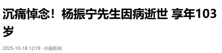2025年10月18日,杨振宁先生离世。