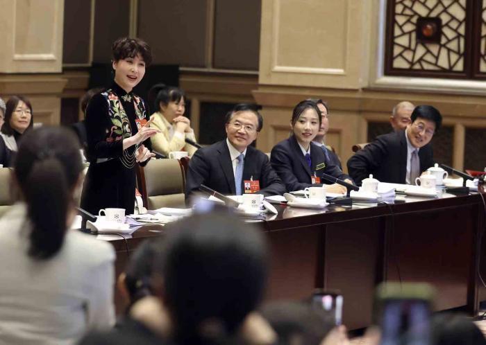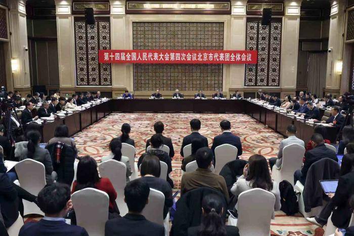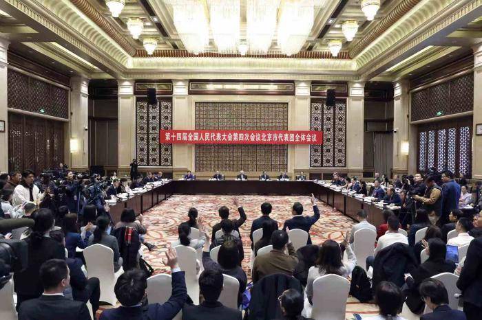 3月6日上午,十四届全国人大四次会议北京代表团开放团组会议在北京会议中心举行。全国人大代表回答记者提问。